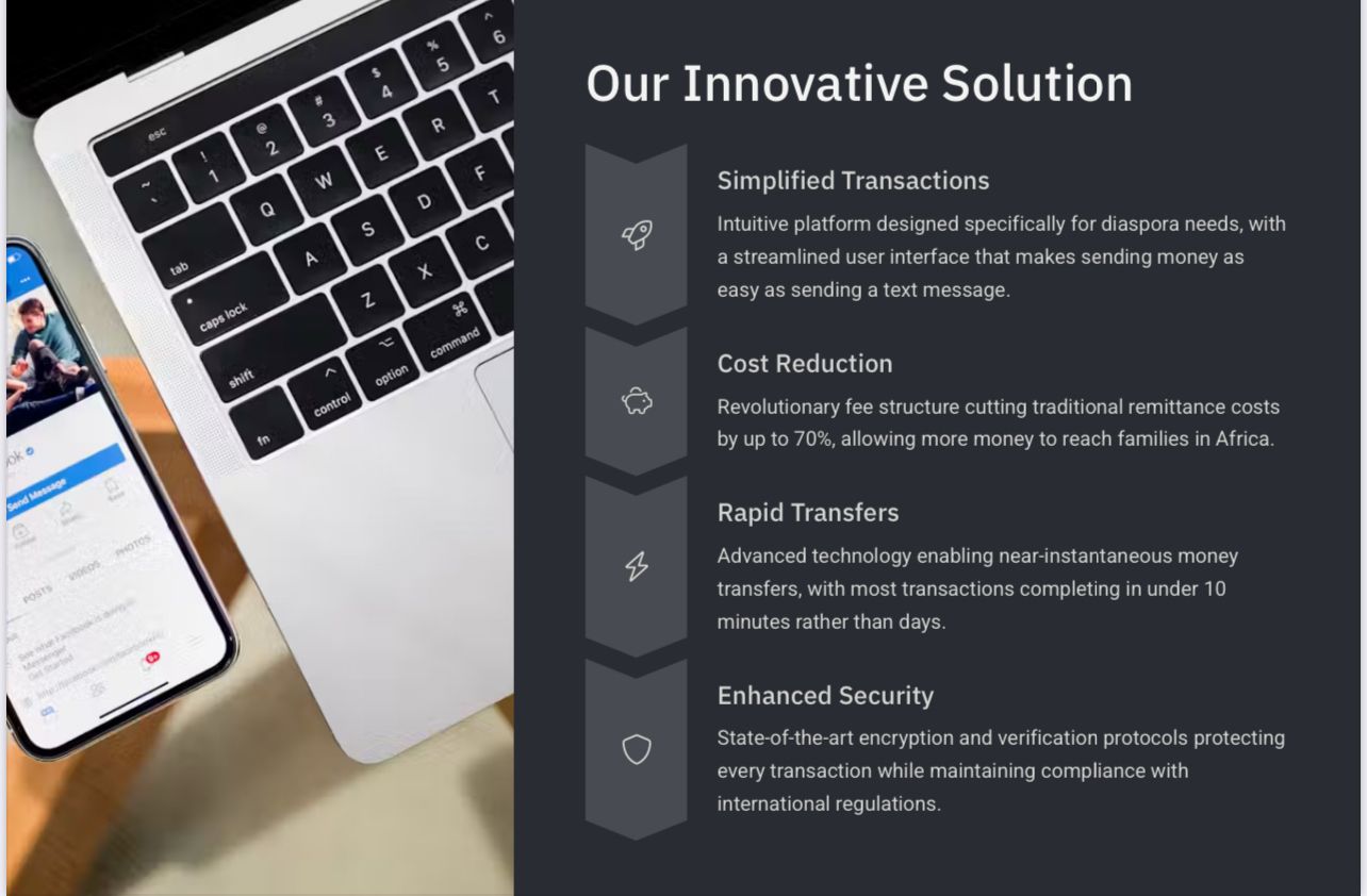 Intuitive platform designed specifically for diaspora needs, with a streamlined user interface that makes sending money as easy as sending a text message.